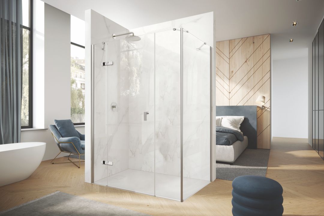 Astra Křídlové dveře s pevným segmentem a protisegmentem do niky nebo pro boční stěnu PX03
