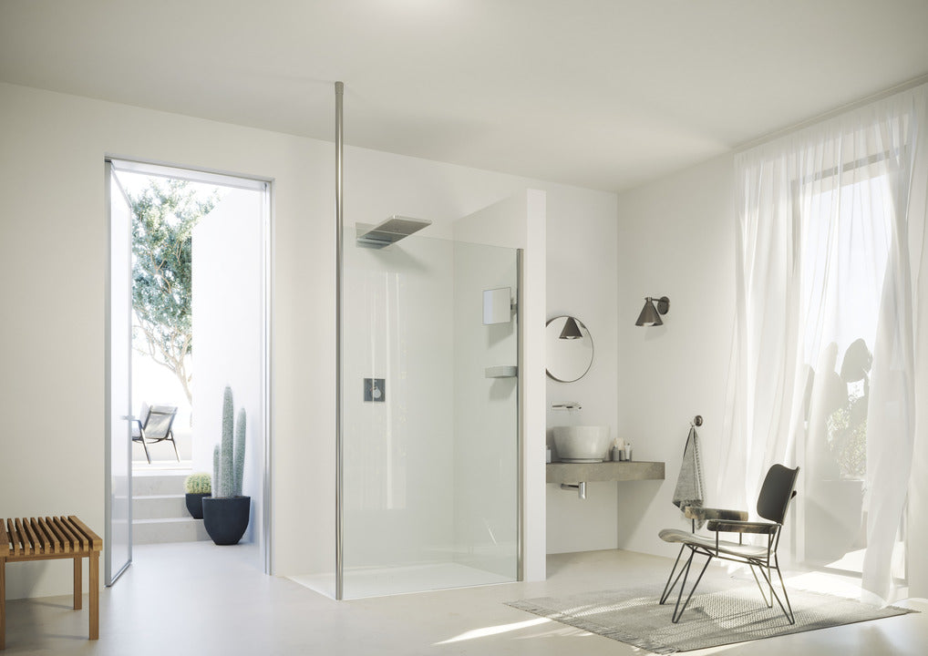 • Zasklení jednovrstvým bezpečnostním sklem tl 8 mm dle DIN EN 12150, volitelně s povrchovou úpravou HÜPPE Anti-Plaque pro snazší údržbu