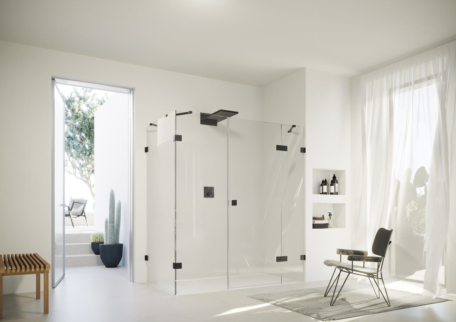 • Üvegezés 8 mm-es DIN EN 12150 szerinti egyrétegű biztonsági üveggel, opcionálisan könnyen ápolható HÜPPE Anti-Plaque felületnemesítő eljárással