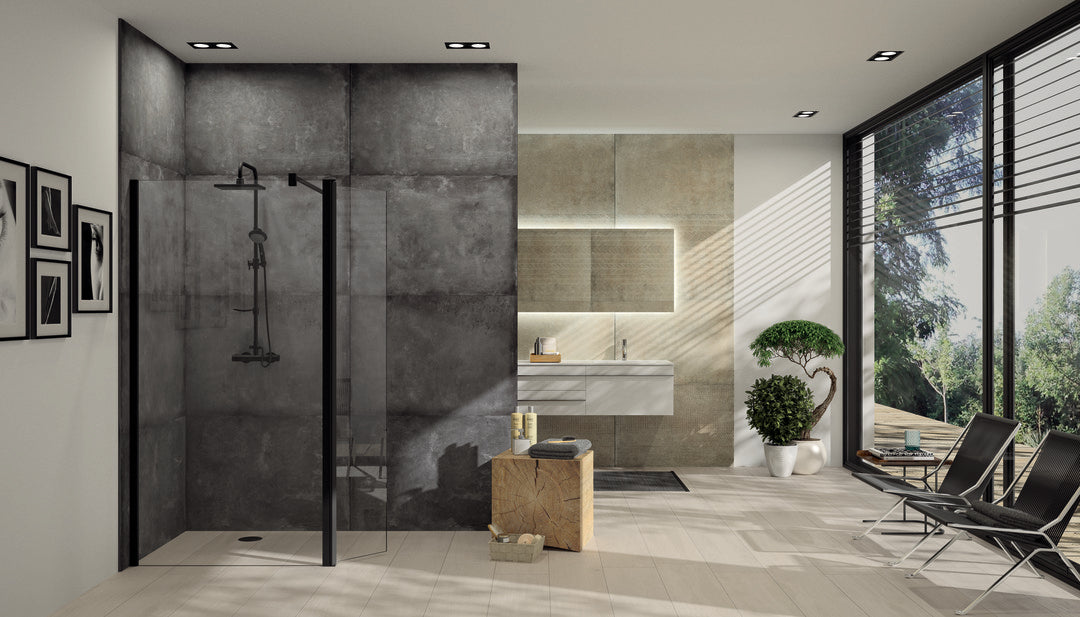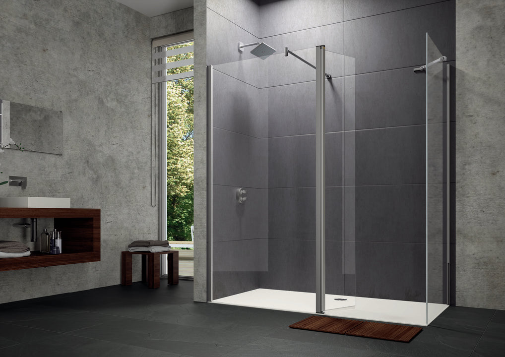 • Částečně orámovaná skleněná zástěna WALK-IN s pohyblivým segmentem, otevírání dovnitř a ven